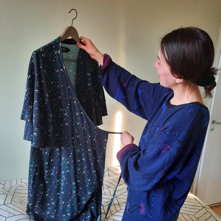 ”Lainaan vaatelainaamosta lähinnä kivoja arkivaatteita. Pidän siitä, että lainaamosta saa kotimaisten yritysten eettisesti tuotettuja vaatteita. Lainaaminen vähentää ostamista, kun ei tule ostettua uusia vaatteita vain siksi, että kaipaa vaihtelua. Jos johonkin vaatteeseen tykästyy, sitä voi lainata useamman kerran. On myös helpottavaa, ettei tarvitse potea huonoa omaatuntoa, jos vaate ei tunnukaan omalta tai siihen kyllästyy. Sen voi aina palauttaa ja joku muu saa siitä iloa. Lainaaminen säästää kaappitilaa, hermoja, ympäristöä ja ehkä rahaakin.”